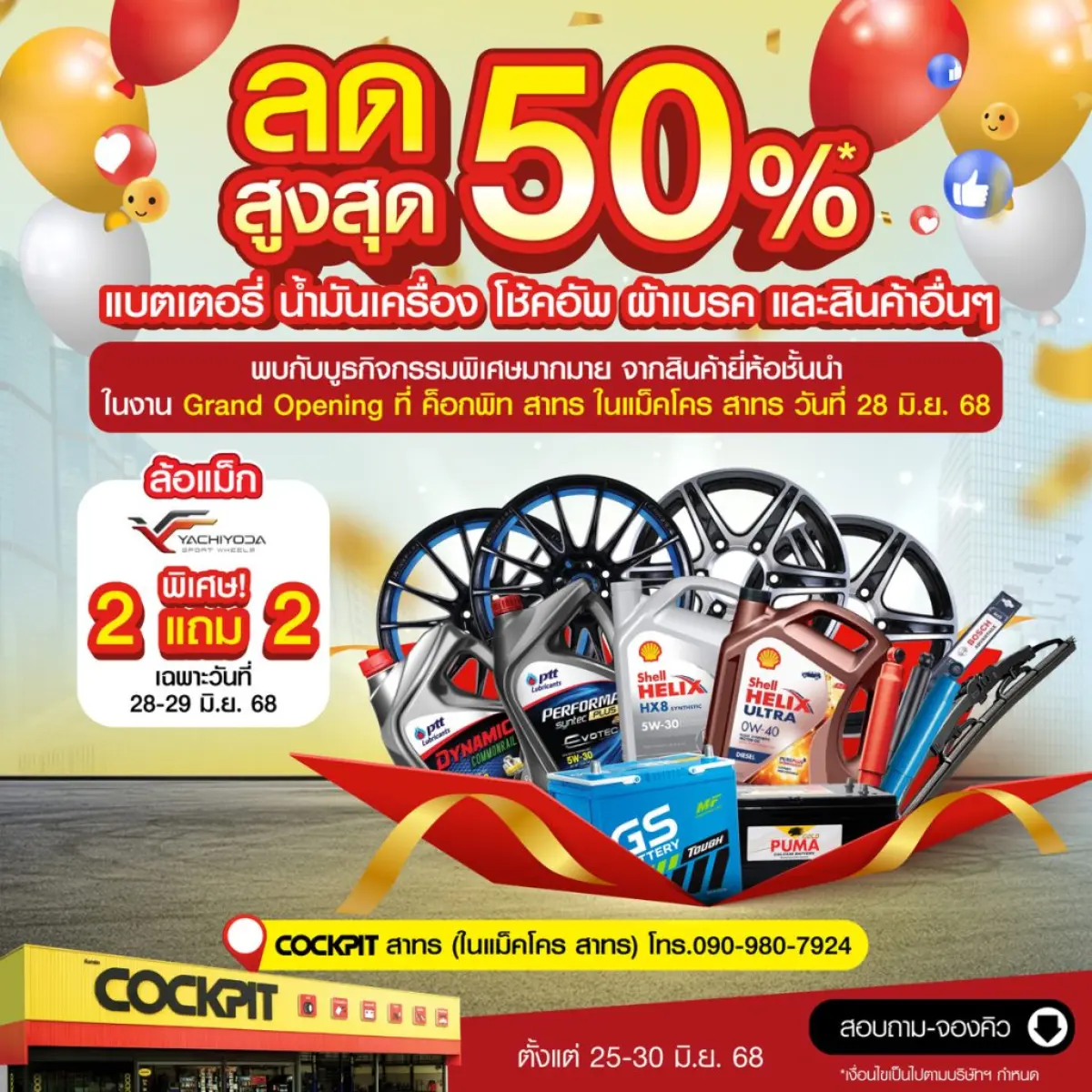 COCKPIT, a Fast Fist One-Stop Auto Care Center under theoperation of Bridgestone A.C.T (Thailand) Co., Ltd., continues to expand its branches nationwide to serve customers across the country with a commitment to becoming a trusted companion that ensures customers’ safe journeys and peace of mind to mobility life. COCKPIT is celebrating the grand opening of its new branch, “COCKPIT Sathorn”, located at Makro Sathorn, Bangkok. The celebration includes great promotional offers from 25 to 30 June 2025.