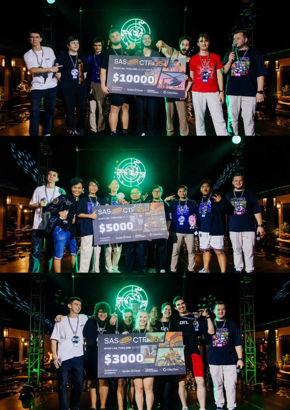 ทีม C4T BuT S4D จากรัสเซียคว้าชัยชนะในการแข่งขัน Kaspersky Security Analyst Summit (SAS) Capture the Flag (CTF) รอบชิงชนะเลิศ ซึ่งในปีนี้มีทีมเข้าร่วมรอบชิงชนะเลิศนี้กว่าสิบทีม ทั้งผู้เล่น CTF มืออาชีพ และผู้เข้าแข่งขันจากภาคธุรกิจและภาควิชาการ รางวัลรวมมูลค่า 18,000 ดอลลาร์สหรัฐ มอบให้กับทีมผู้ชนะในการแข่งขันรอบชิงชนะเลิศ การแข่งขันนี้เป็นส่วนหนึ่งของงาน Kaspersky SAS 2025 ที่เขาหลัก ประเทศไทย ระหว่างวันที่ 25-26 ตุลาคม