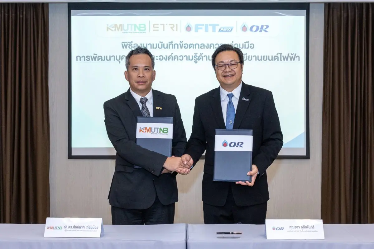 บริษัท ปตท. น้ำมันและการค้าปลีก จำกัด (มหาชน) หรือ OR โดย ฝ่ายธุรกิจบริการยานยนต์ (FIT Auto) ลงนามบันทึกข้อตกลงความร่วมมือ (MOU) กับ มหาวิทยาลัยเทคโนโลยีพระจอมเกล้าพระนครเหนือ (มจพ.) โดย สำนักวิจัยวิทยาศาสตร์และเทคโนโลยี เพื่อดำเนินโครงการ “พัฒนาบุคลากรและองค์ความรู้ด้านเทคโนโลยียานยนต์ไฟฟ้า” โดยมี คุณรชา อุทัยจันทร์ รองประธานเจ้าหน้าที่บริหารด้านธุรกิจหล่อลื่น บริษัท ปตท. น้ำมันและการค้าปลีก จำกัด (มหาชน) และ รองศาสตราจารย์ ดร.กัมปนาท เทียนน้อย ผู้อำนวยการสำนักวิจัยวิทยาศาสตร์และเทคโนโลยีมหาวิทยาลัยเทคโนโลยีพระจอมเกล้าพระนครเหนือ ร่วมลงนามเมื่อเร็ว ๆ นี้