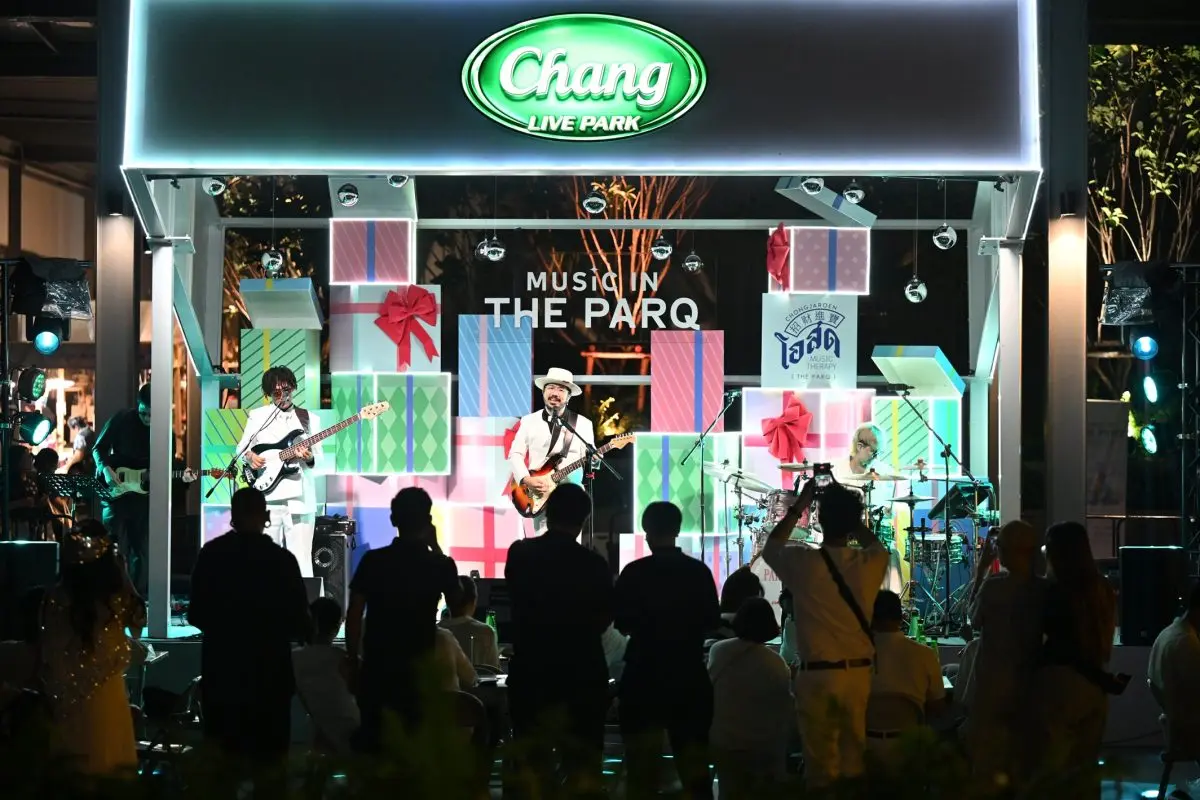 Enjoy the cool breeze in a festive atmosphere with chill music, food, and drinks at Music In The PARQ, a new hangout spot by ChongJaroen. Don’t miss unforgettable concerts by renowned artists including Oat Pramote, Pop Pongkool, Two Popetorn, WANYAi, FREEHAND, F.HERO, and Blackbeans, supported by Chang Mineral Water, at Q Space from 25th November – 19th December, 2025 (except Saturdays, Sundays, and public holidays).