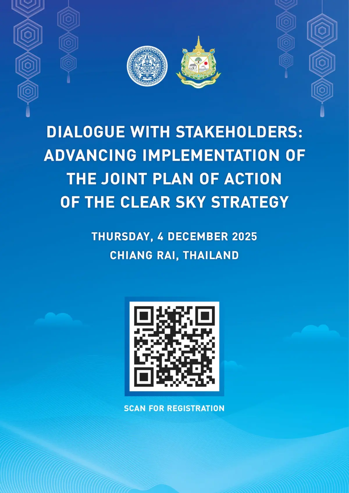 กรมอาเซียน กระทรวงการต่างประเทศ ร่วมกับกรมควบคุมมลพิษ กระทรวงทรัพยากรธรรมชาติและสิ่งแวดล้อม จะจัดโครงการขับเคลื่อนความร่วมมือตามแผนปฏิบัติการร่วมภายใต้ “ยุทธศาสตร์ฟ้าใส (CLEAR Sky Strategy)” ในวันพฤหัสบดีที่ 4 ธันวาคม 2568 ที่โรงแรมเดอะ ริเวอร์รี บาย กะตะธานี จังหวัดเชียงราย และผ่านระบบการประชุมทางไกล โดยมีนายศรัณย์ เจริญสุวรรณ เลขานุการรัฐมนตรีว่าการกระทรวงการต่างประเทศ ผู้แทนรัฐมนตรีว่าการกระทรวงการต่างประเทศ เป็นประธานในพิธีเปิด