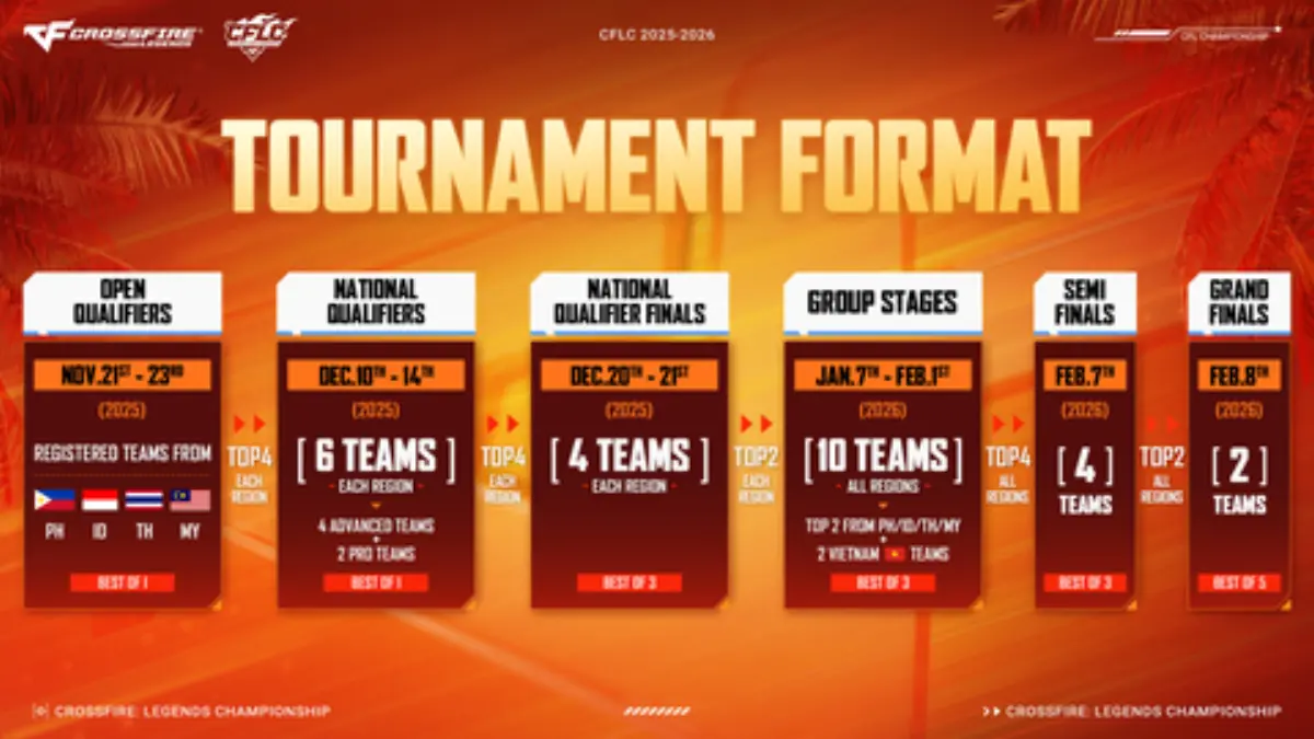 The tournament will culminate with the CFLC Semi Finals on February 7, 2026, followed by the CFLC Grand Finals on February 8, 2026, where the first CrossFire: Legends Championship Southeast Asia title will be awarded.