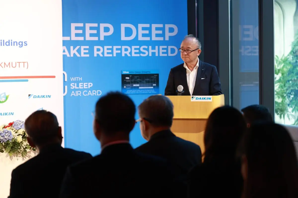 นายทากาโยชิ มิกิ ประธานกรรมการ บริษัท สยามไดกิ้นเซลส์ จำกัด กล่าวว่า “โจทย์เรื่องเครื่องปรับอากาศสำหรับไดกิ้นในวันนี้ ไม่ได้หยุดอยู่ที่การทำความเย็น แต่เป็นวิธีการทำให้อากาศภายในอาคารดีขึ้นอย่างเป็นระบบ ประหยัดพลังงาน และลดผลกระทบต่อสิ่งแวดล้อมได้จริง – ความร่วมมือกับ มจธ. จึงช่วยต่อยอดจากความเชี่ยวชาญด้านวิจัย ให้ไปสู่การนำไปใช้จริง เพื่อพัฒนาโซลูชันที่ตอบโจทย์อาคารและผู้ใช้งานในชีวิตประจำวัน พร้อมยกระดับมาตรฐานอุตสาหกรรมให้เดินหน้าไปในทิศทางเดียวกับเป้าหมายคาร์บอนที่ทั่วโลกกำลังให้ความสำคัญ”