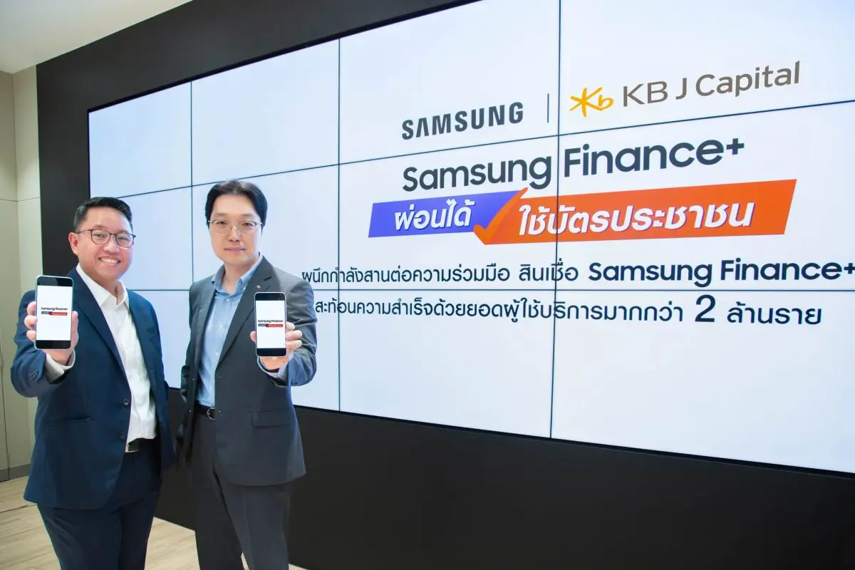 ด้วยการเติบโตทางธุรกิจที่ประสบความสำเร็จอย่างรวดเร็วและต่อเนื่อง ปัจจุบัน Samsung Finance Plus มีผู้ใช้บริการมากกว่า 2 ล้านรายทั่วประเทศ และมีเครือข่ายร้านค้าพันธมิตรที่เข้าร่วมโครงการมากกว่า 6,000 สาขา ครอบคลุมทั่วทุกภูมิภาค โดยยังคงมีทิศทางการขยายสาขาการให้บริการอย่างต่อเนื่อง สะท้อนศักยภาพการเติบโตของสินเชื่อ Samsung Finance Plus ผ่านแพลตฟอร์มพันธมิตร (Partner-led Lending Platform) ซึ่งเป็นหนึ่งในเป้าหมายหลักของการเติบโต KB J Capital ในประเทศไทย