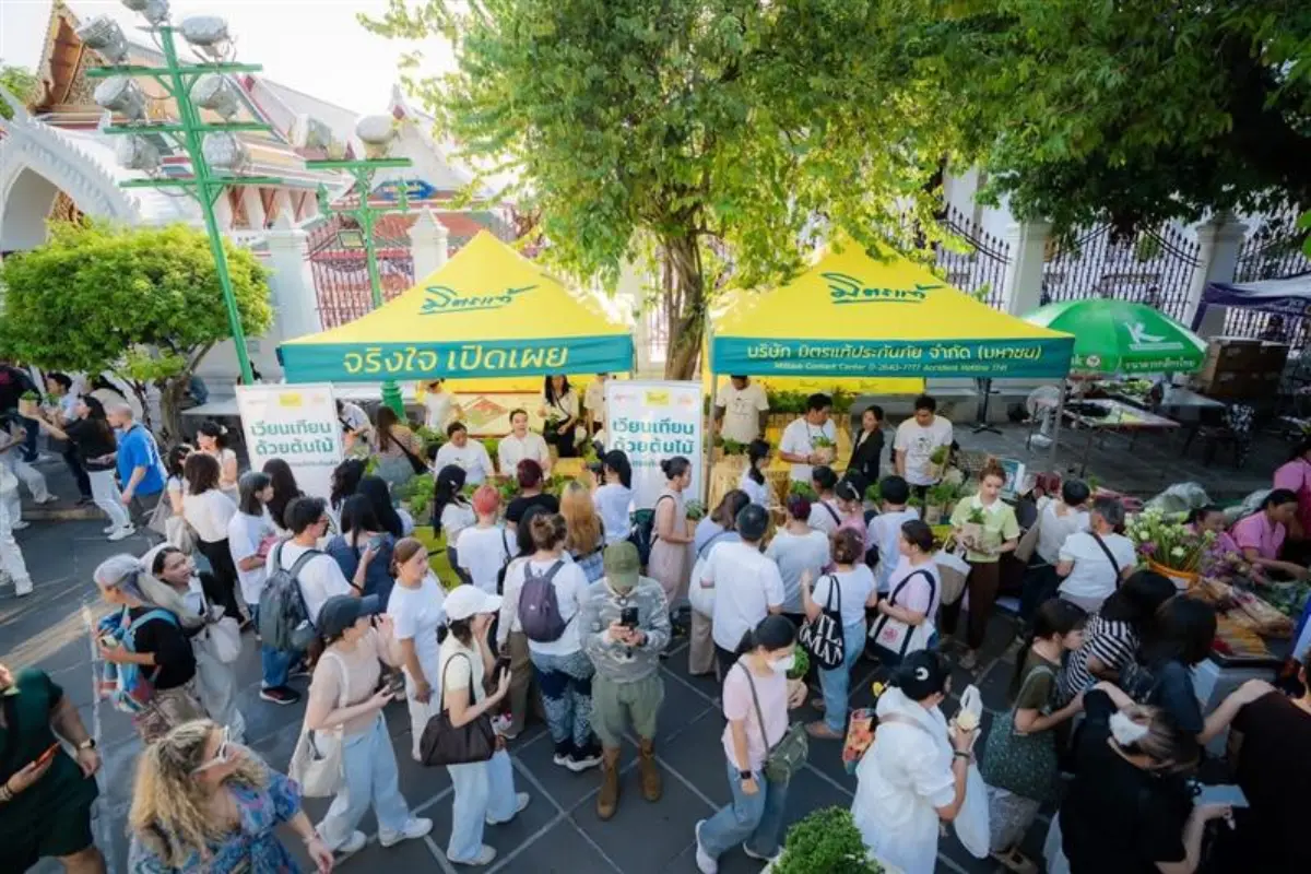 นอกจากนี้ มิตรแท้ประกันภัยยังได้จัดบูธแจกกล้าต้นไม้ให้แก่ประชาชนที่มาร่วมเวียนเทียน เพื่อส่งเสริมแนวคิด “เวียนเทียนด้วยต้นไม้” ซึ่งเป็นอีกทางเลือกหนึ่งของการทำบุญที่ช่วยลดการใช้ธูป เทียน และดอกไม้ อันก่อให้เกิดขยะและมลภาวะ พร้อมเชิญชวนให้นำกล้าไม้กลับไปปลูกที่บ้านหรือในชุมชน เพื่อเพิ่มพื้นที่สีเขียวและสืบต่อเป็น “ต้นบุญ” ที่เติบโตควบคู่กับวิถีชีวิตของผู้คน