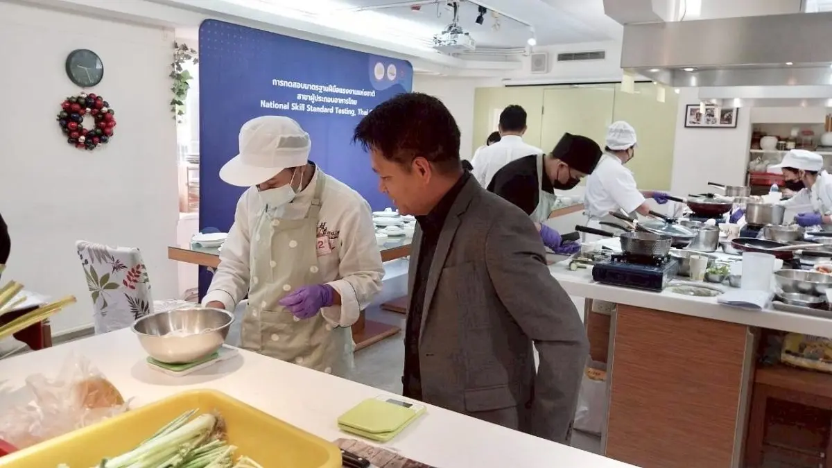 นายภัทรวุธ เภอแสละ รองอธิบดีกรมพัฒนาฝีมือแรงงาน เปิดเผยว่า กรมพัฒนาฝีมือแรงงาน และสำนักงานแรงงาน ณ กรุงมะนิลา (ส่วนที่ 2) ไทเป ได้ร่วมกันยกระดับมาตรฐานฝีมือแรงงานไทยในต่างประเทศ โดยเฉพาะสาขาผู้ประกอบอาหารไทย ซึ่งสะท้อนอัตลักษณ์ วัฒนธรรม และภูมิปัญญาไทยได้อย่างโดดเด่น ให้มีมาตรฐานเป็นที่ยอมรับในระดับสากล ควบคู่กับการสร้างความเชื่อมั่นให้แก่ผู้ประกอบการ ผู้บริโภคในคุณภาพอาหารไทย อีกทั้งยังเป็นการส่งเสริมภาพลักษณ์อาหารไทยในเวทีนานาชาติ โดยในครั้งนี้นายสมาสภ์ ปัทมะสุคนธ์ อธิบดีกรมพัฒนาฝีมือแรงงาน ได้มอบหมายให้ตน เป็นประธานในพิธีเปิดโครงการส่งเสริมศักยภาพมาตรฐานฝีมือแรงงานไทยในต่างประเทศ และการทดสอบมาตรฐานฝีมือแรงงานแห่งชาติ สาขาผู้ประกอบอาหารไทย ระดับ 1 ให้แก่แรงงานในต่างแดน มีผู้เข้ารับการทดสอบ จำนวน 31 คน จัดขึ้นระหว่างวันที่ 8–9 เมษายน 2569 ซึ่งเป็นแรงงานไทย และผู้สนใจในวิชาชีพด้านการประกอบอาหารไทยในไต้หวัน โดยการทดสอบครอบคลุมทั้งภาคทฤษฎีและภาคปฏิบัติ ภายใต้หลักเกณฑ์และมาตรฐานของกรมพัฒนาฝีมือแรงงานอย่างเคร่งครัด