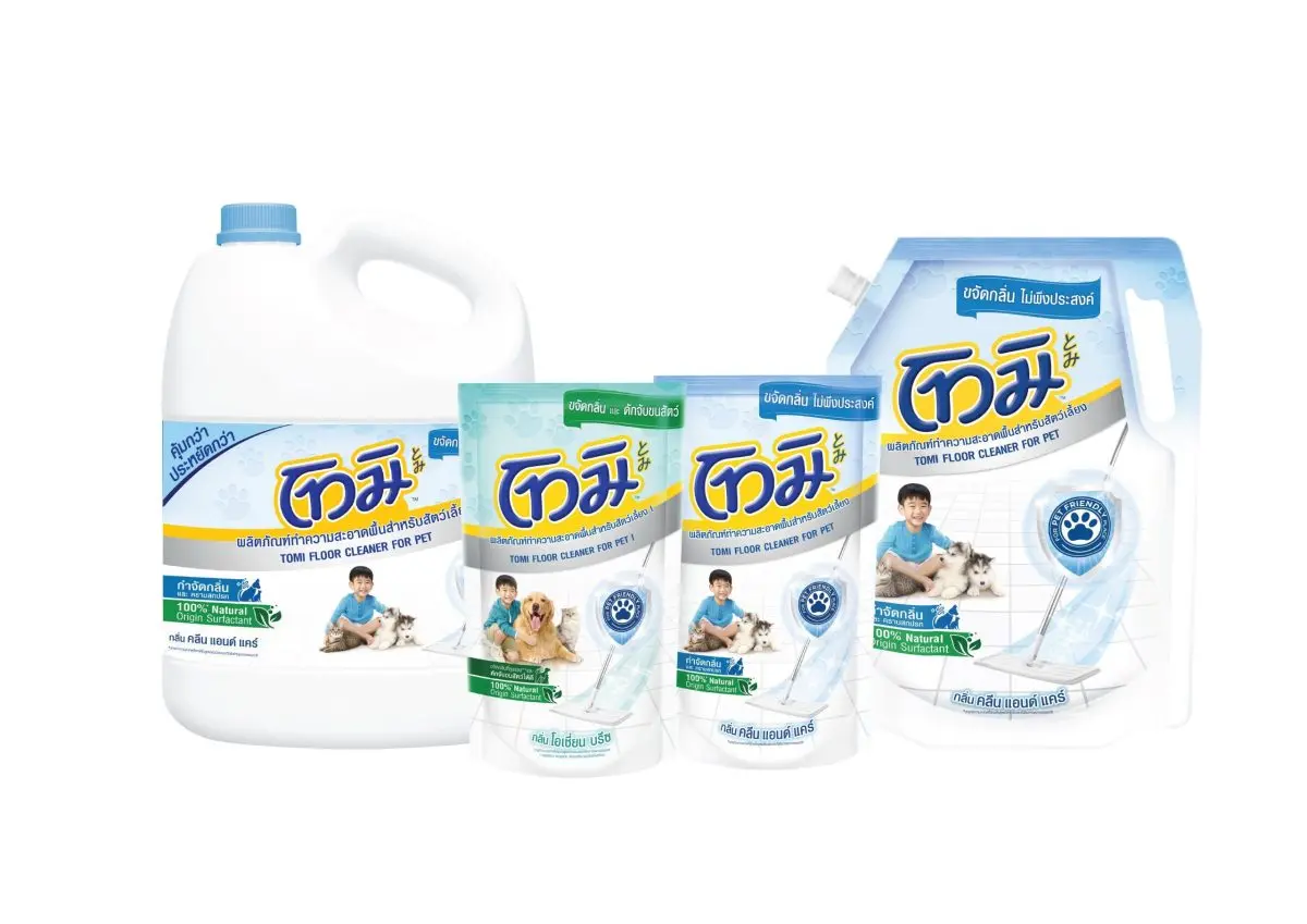 โทมิ ฟอร์เพ็ท ตอบโจทย์ทุกไลฟ์สไตล์ของบ้านที่มีลูกสี่ขา ด้วย 2 กลิ่นหอมสุดละมุน ที่เลือกใช้สารทำความสะอาดที่มีต้นกำเนิดจากธรรมชาติ 100% ได้แก่