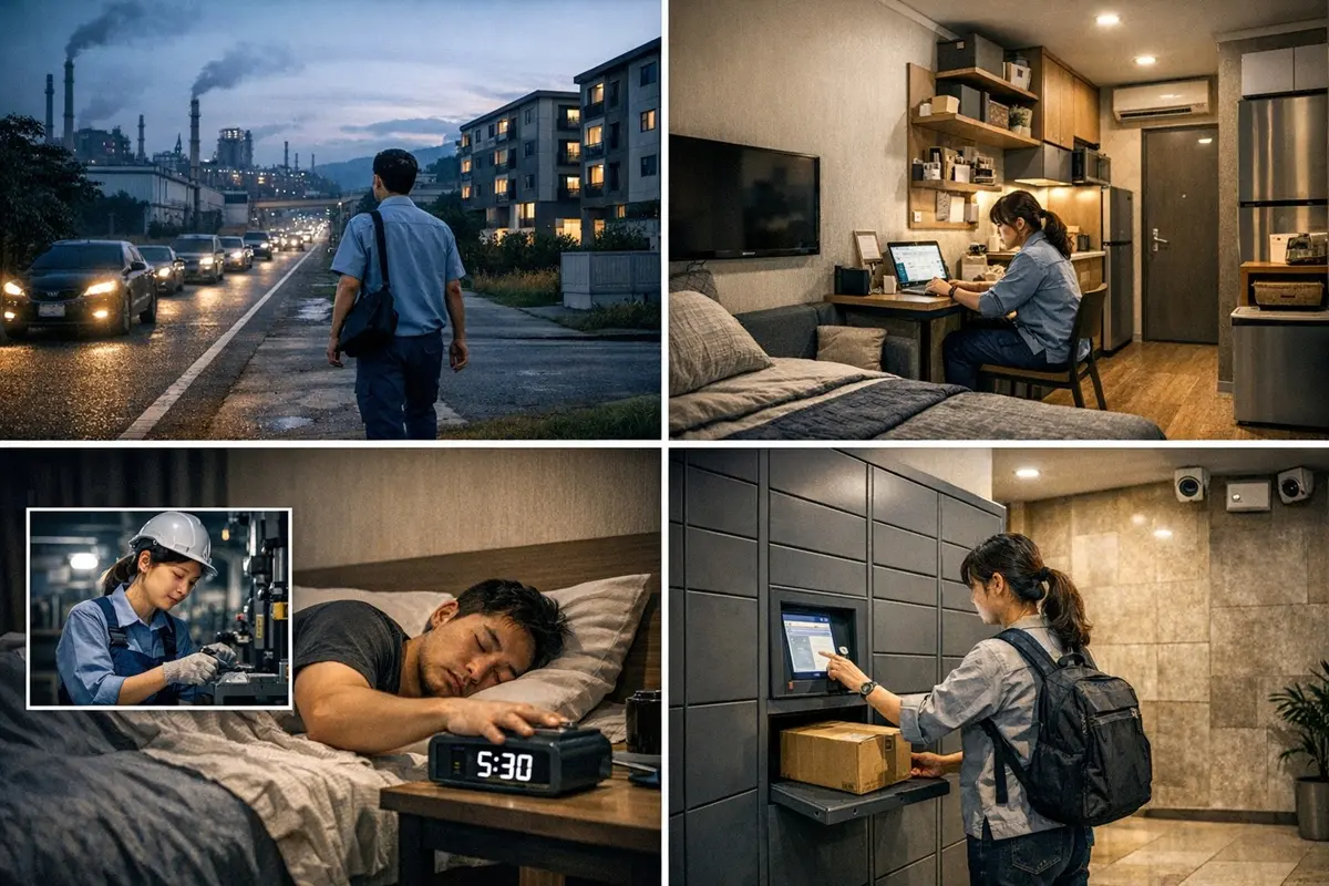 เมื่อพิจารณาจากมุมของผู้อยู่อาศัย ภาพชีวิตของคนทำงานในนิคมอุตสาหกรรมมีลักษณะเฉพาะที่แตกต่างจากเมืองใหญ่ พนักงานจำนวนมากทำงานเป็นกะ มีเวลาทำงานไม่แน่นอน บางส่วนต้องทำงานล่วงเวลาหรืออยู่ในสถานะ Standby การเดินทางที่ยาวนานจึงส่งผลโดยตรงต่อทั้งสุขภาพและคุณภาพชีวิต เวลาที่สูญเสียไปบนท้องถนนไม่ได้หมายถึงความเหนื่อยล้าเพียงอย่างเดียว แต่หมายถึงเวลาพักผ่อนและการฟื้นฟูพลังชีวิตที่ลดลง ในบริบทเช่นนี้ ที่อยู่อาศัยใกล้สถานที่ทำงานจึงไม่ใช่เพียงความสะดวกสบาย แต่เป็นเครื่องมือในการบริหารจัดการชีวิตประจำวันอย่างมีประสิทธิภาพ ลักษณะการอยู่อาศัยของแรงงานในพื้นที่ส่วนใหญ่ยังเป็นการอยู่คนเดียวหรืออยู่เป็นคู่ ห้องพักจึงไม่จำเป็นต้องมีขนาดใหญ่ หากแต่ต้องจัดสัดส่วนชัดเจน มีพื้นที่พักผ่อน มุมทำงานขนาดกะทัดรัด และพื้นที่จัดเก็บที่เพียงพอสำหรับการอยู่อาศัยระยะยาว การออกแบบที่ช่วยให้ใช้พื้นที่ได้อย่างเต็มประสิทธิภาพ ยังช่วยลดค่าใช้จ่ายจากการซื้อเฟอร์นิเจอร์เพิ่มเติม และเพิ่มความสบายในการใช้งานจริง อีกหนึ่งปัจจัยที่สะท้อนพฤติกรรมชีวิตยุคใหม่ของคนทำงาน คือการรับพัสดุจากการซื้อสินค้าออนไลน์ สำหรับผู้ที่กลับบ้านไม่เป็นเวลา ระบบรับพัสดุด้วยตนเองนอกเวลาทำการ รวมถึงระบบรักษาความปลอดภัยที่ได้มาตรฐาน จึงไม่ใช่เพียงฟังก์ชันเสริม แต่เป็นองค์ประกอบสำคัญที่ช่วยเพิ่มความสะดวกและลดความยุ่งยากในชีวิตประจำวัน