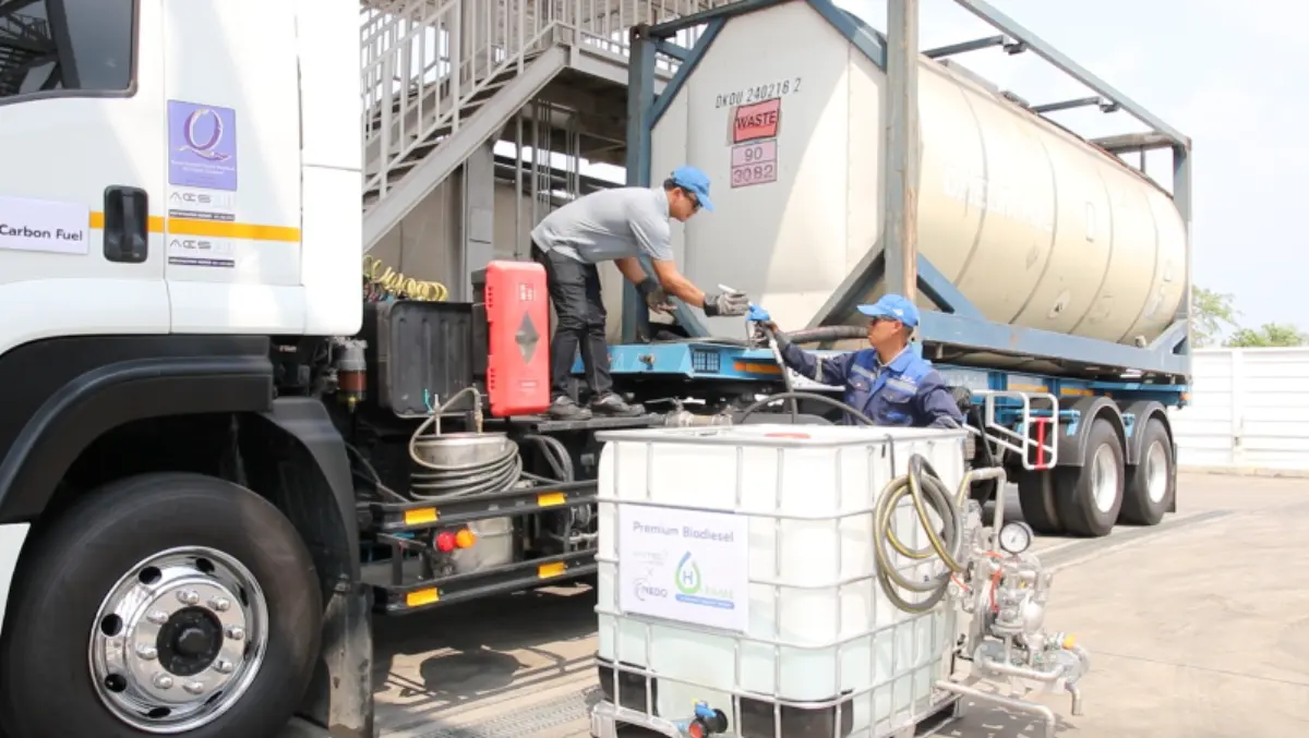 สำหรับภาคธุรกิจ วันนี้การเลือกใช้พลังงานไม่ได้เป็นแค่เรื่องต้นทุน แต่เป็นเรื่องของความสามารถในการแข่งขันในระยะยาว คุณสยามณัฐ พนัสสรรณ์ กรรมการผู้จัดการ บริษัท ซัน-อัพ รีไซคลิง จำกัด กล่าวถึงมุมมองของผู้ประกอบการต่อการนำ H-FAME มาใช้เป็นเชื้อเพลิงคาร์บอนต่ำว่า “ที่ ซัน-อัพ รีไซคลิง เราดำเนินธุรกิจด้วยการเป็นผู้ช่วยลดคาร์บอนฟุตพริ้นท์ให้ลูกค้า โดยให้บริการรีไซเคิลสารทำละลายอินทรีย์ (โซลเว้นท์) เช่น ทินเนอร์ แอลกอฮอล์ โทลูอีน ที่มีประสิทธิภาพและความบริสุทธิ์สูง และออกแบบ ผลิตเครื่องบำบัดน้ำเสียอุตสาหกรรม แบบ Evaporator ซึ่งเป็นภารกิจหลักที่ช่วยลดของเสียและลดผลกระทบต่อสิ่งแวดล้อมให้กับภาคอุตสาหกรรมมาโดยตลอด แต่เมื่อเราหันกลับมามองการลดคาร์บอนฟุตพริ้นท์ โดยเฉพาะในกิจกรรมการขนส่งของเราเอง กลับพบว่าเป็นโจทย์ที่ท้าทายมาก เพราะการเปลี่ยนไปใช้รถบรรทุกไฟฟ้า (EV) ในงานขนส่งวัตถุไวไฟยังทำได้ยากและมีข้อจำกัดทางเทคนิค เราจึงมองหาทางเลือกใหม่ จนได้มาพบกับ H-FAME ซึ่งเป็นคำตอบที่ตอบโจทย์เราที่สุด”